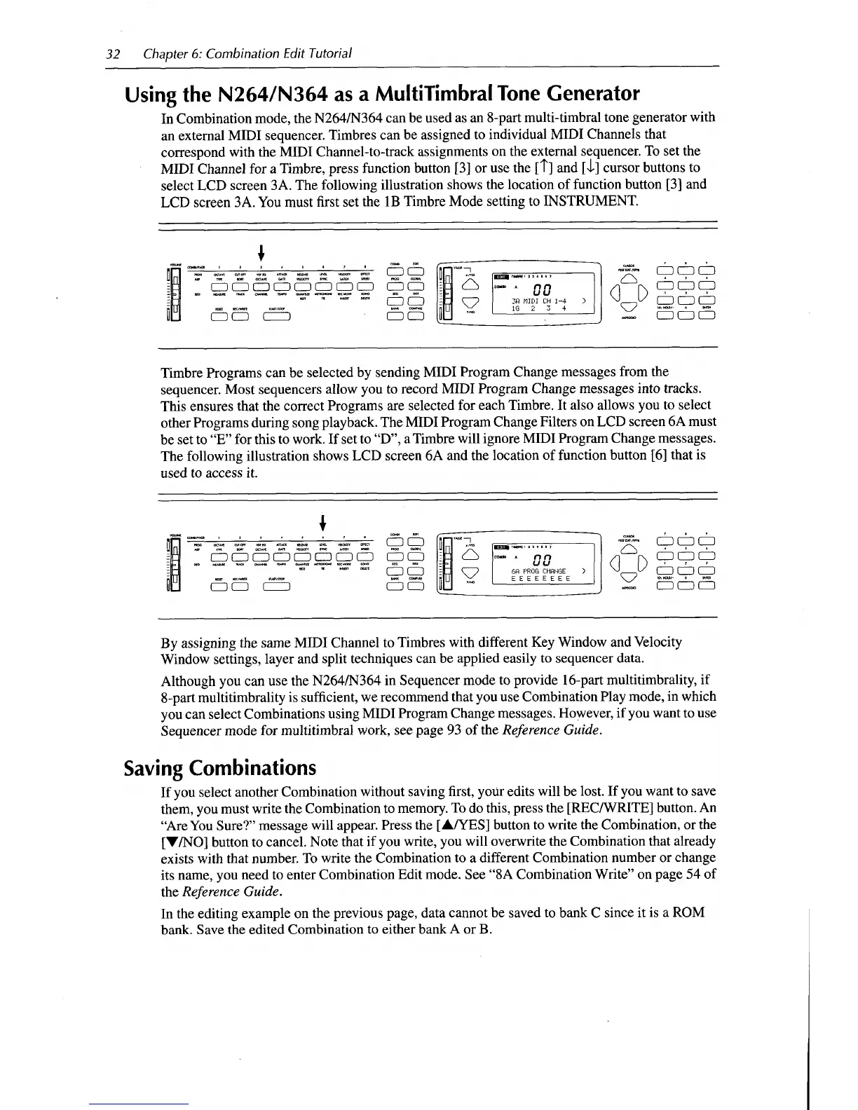 Korg N264 - Advanced Combination Features; Using as a MultiTimbral Tone Generator; Saving Combinations