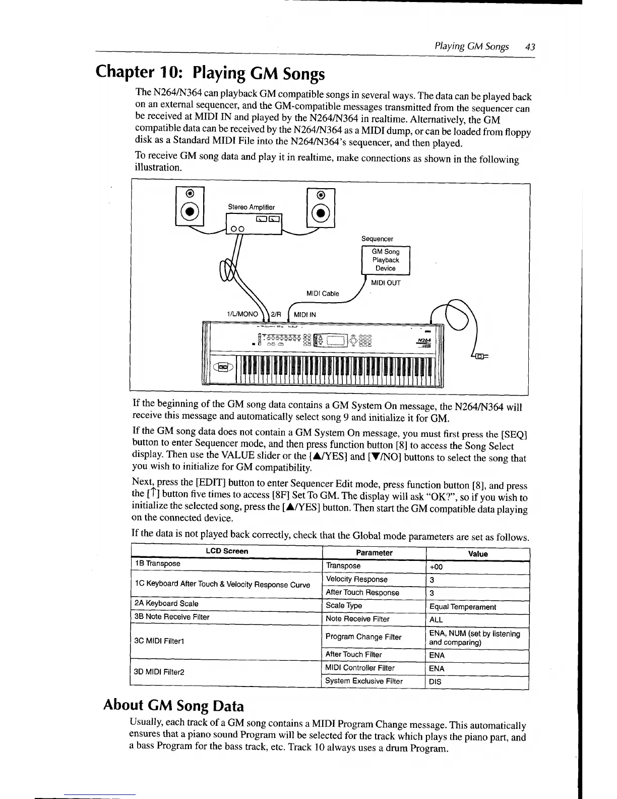 Korg N264 - Playing GM Songs; GM Song Playback; About GM Song Data