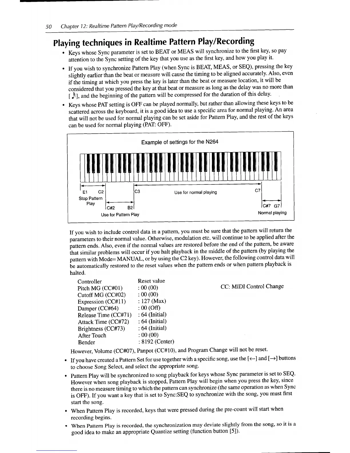 Korg N264 - RPPR Playing Techniques; Playing techniques in Realtime Pattern Play;Recording