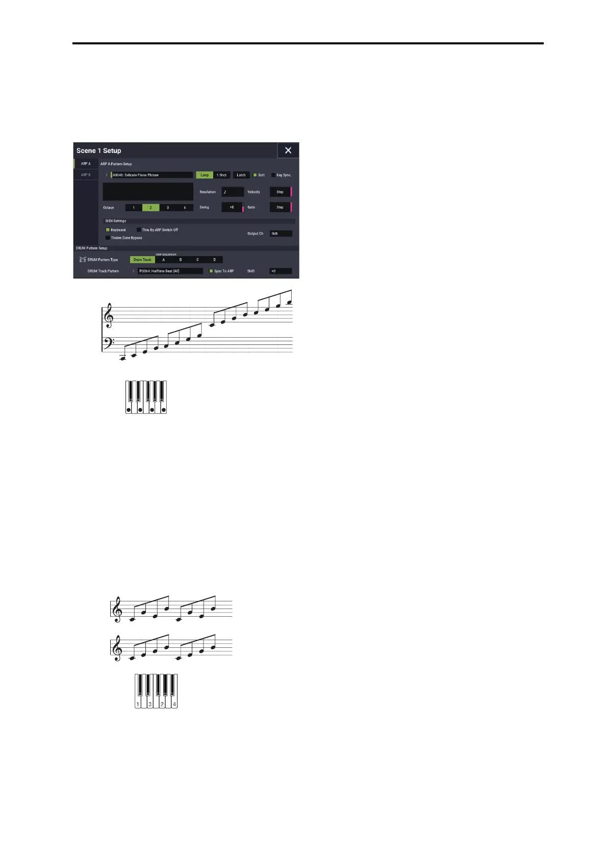 Arpeggiator functions and scene settings Setting the scenes