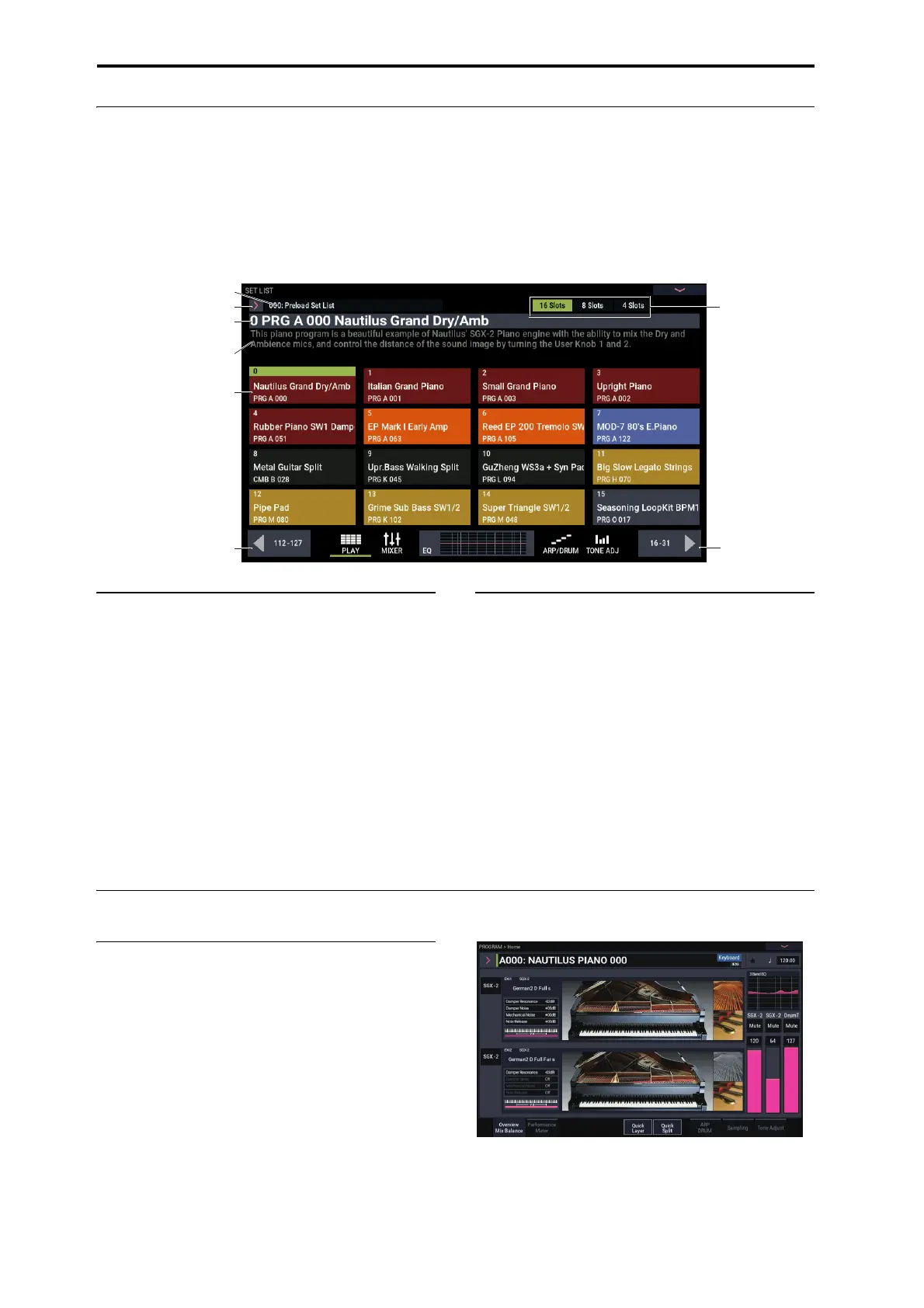 Hay 128 Set Lists, y cada Set List tiene 128 espacios. En