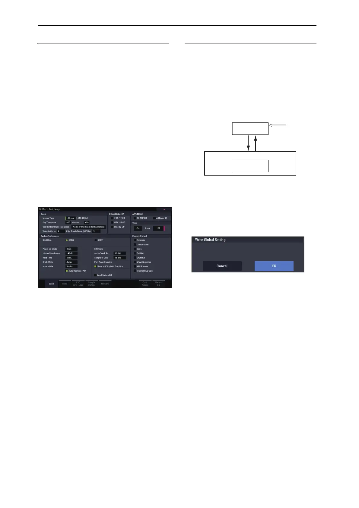 Any edits in GLOBAL > Basic Setup, MIDI,