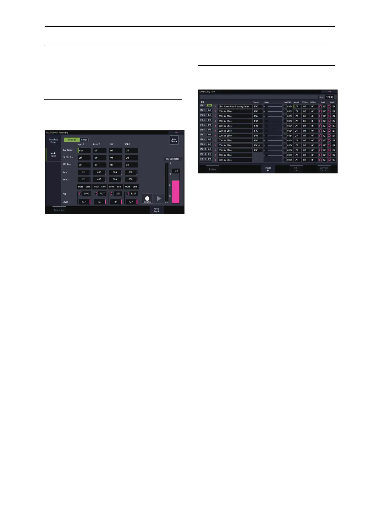 1. Go to the SAMPLING > Recording– Audio Input