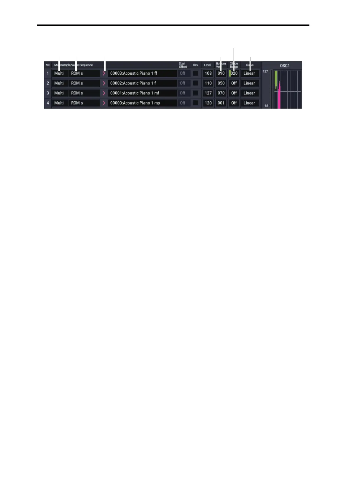 9. Set MS2’s Bottom Vel (Velocity) to 001, and its Xfade