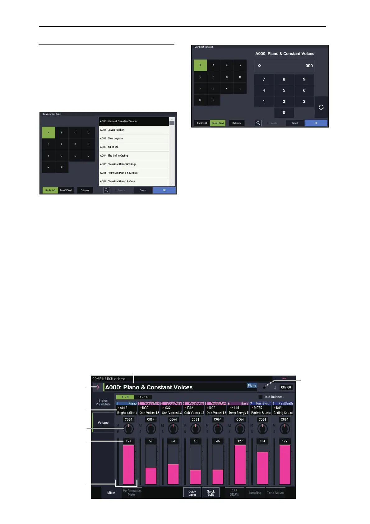 Bank/Combination Select menu: