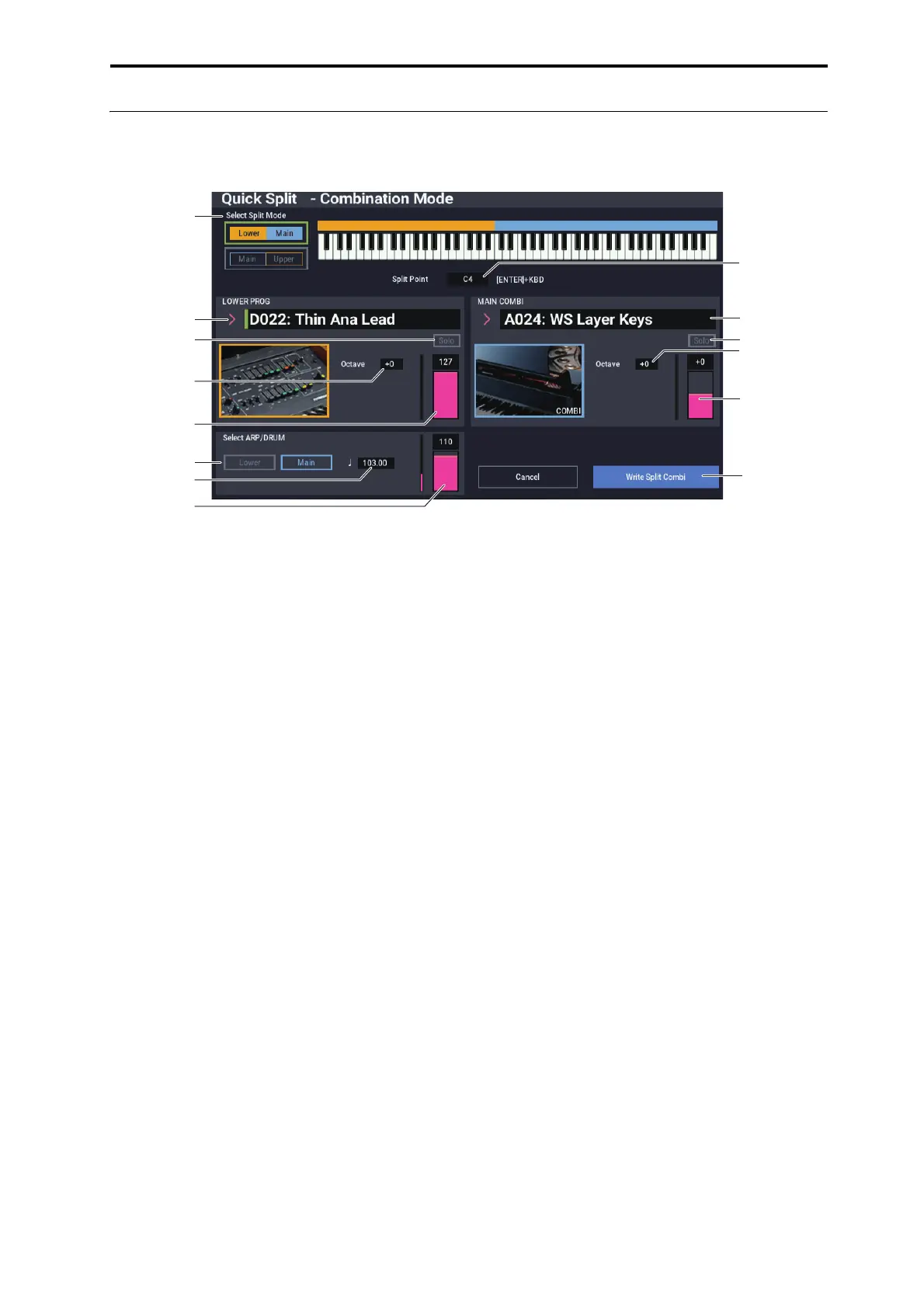 Quick Layer/Split Quick Split example: adding a lead synth to a Combination