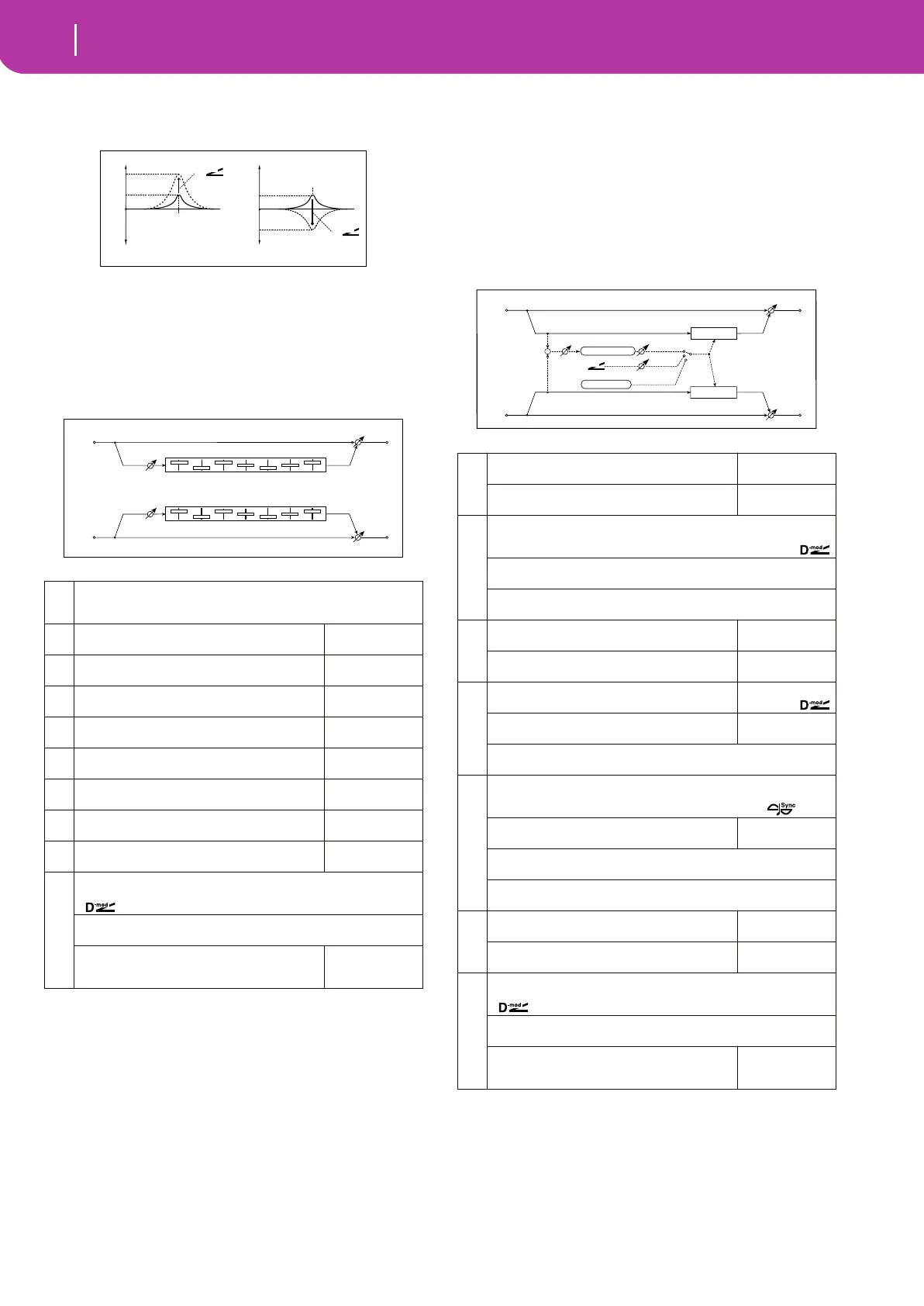 Table , “Sets the modulation amount of the effect bal-