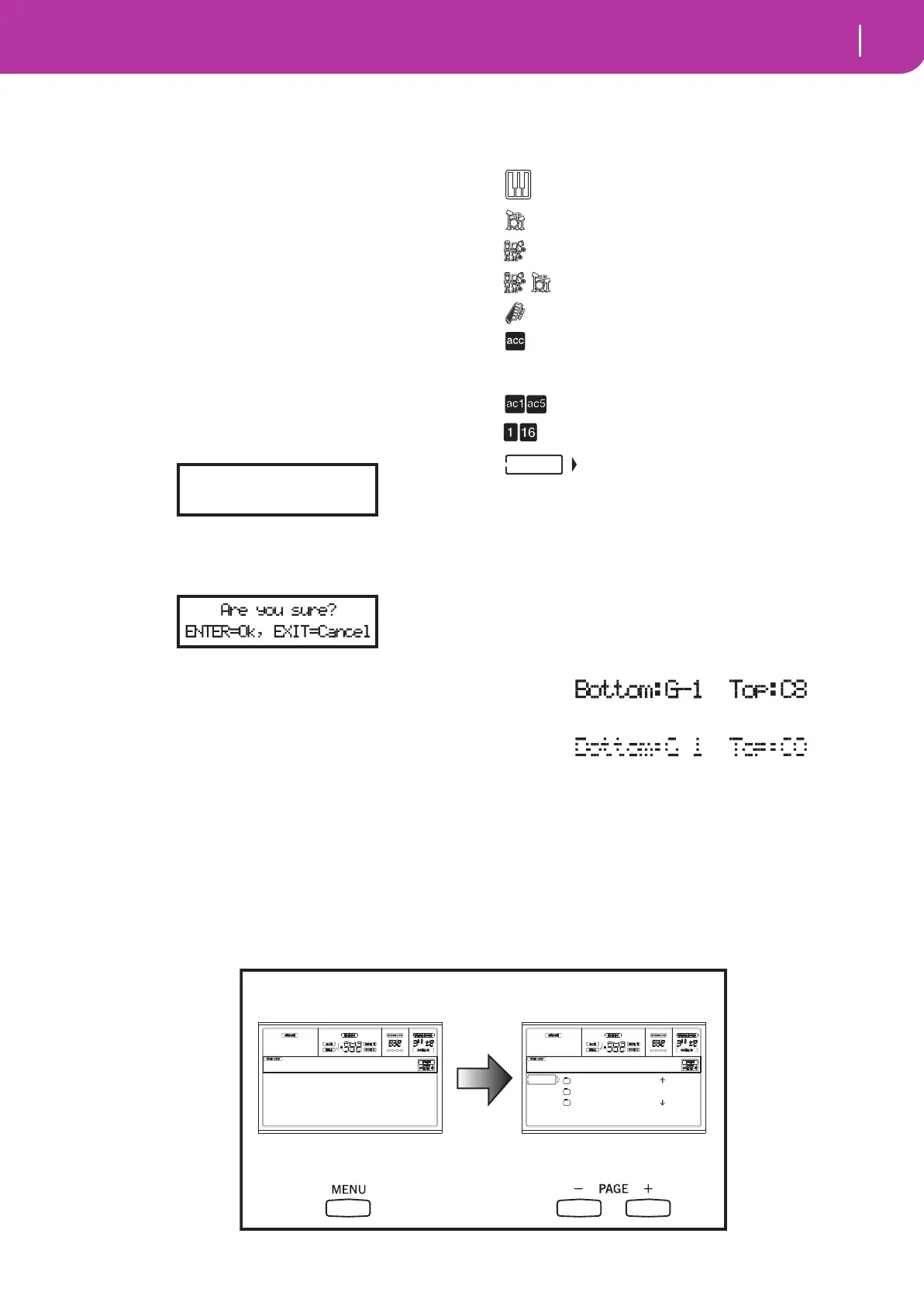 edit pages. Use the MENU and PAGE buttons to browse