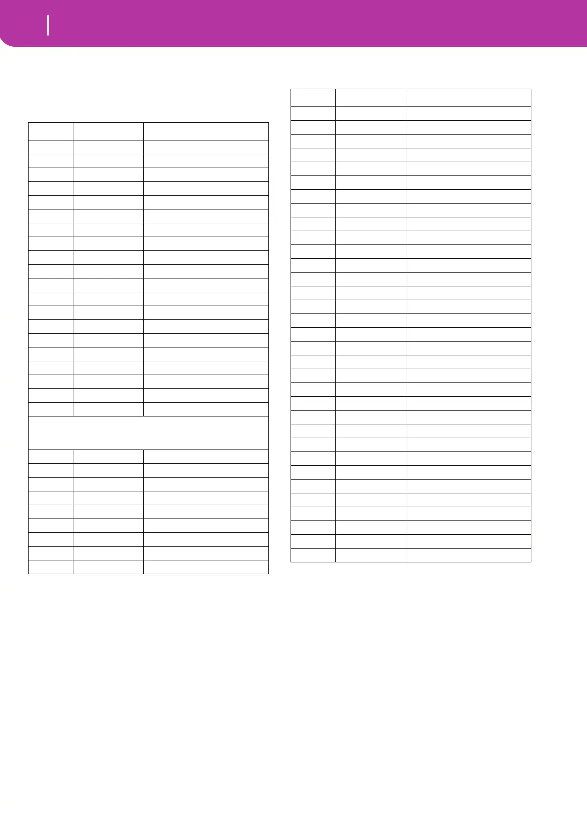The following is a table including all Control Change mes-