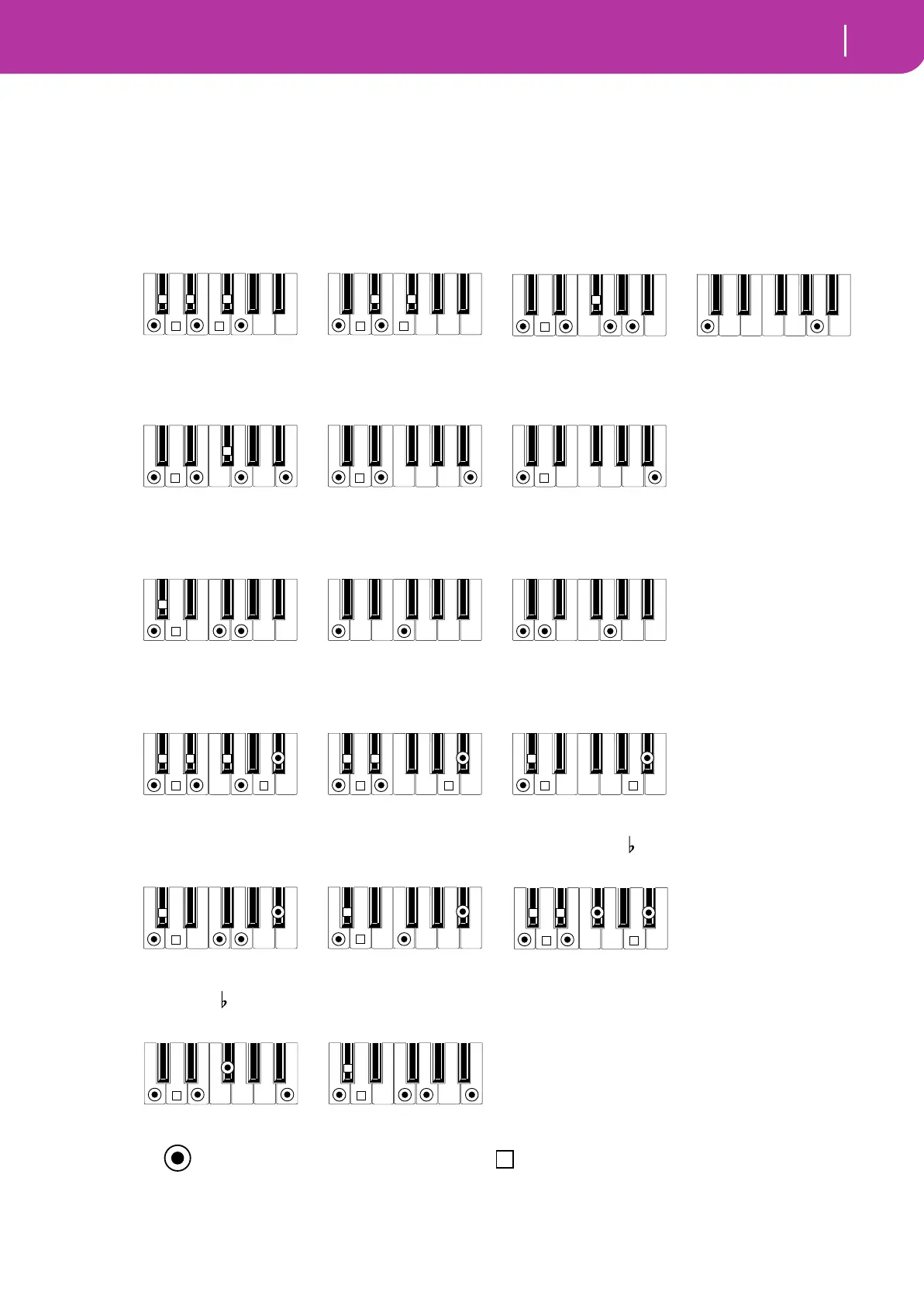 The following pages show the most important chords recognized by the Korg Pa80, when the selected Chord Recognition mode