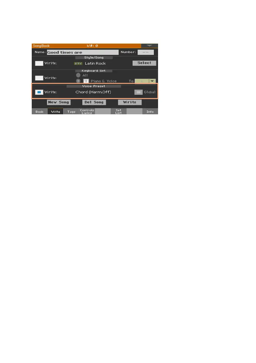 4 Select the Voice/Guitar Preset > Write checkbox to save the new Keyboard
