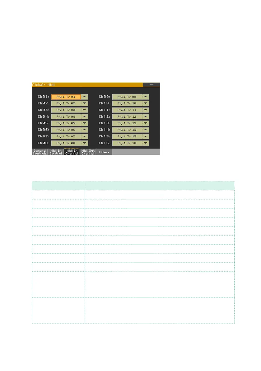 1 Go to the Global > MIDI > MIDI IN Channels page.