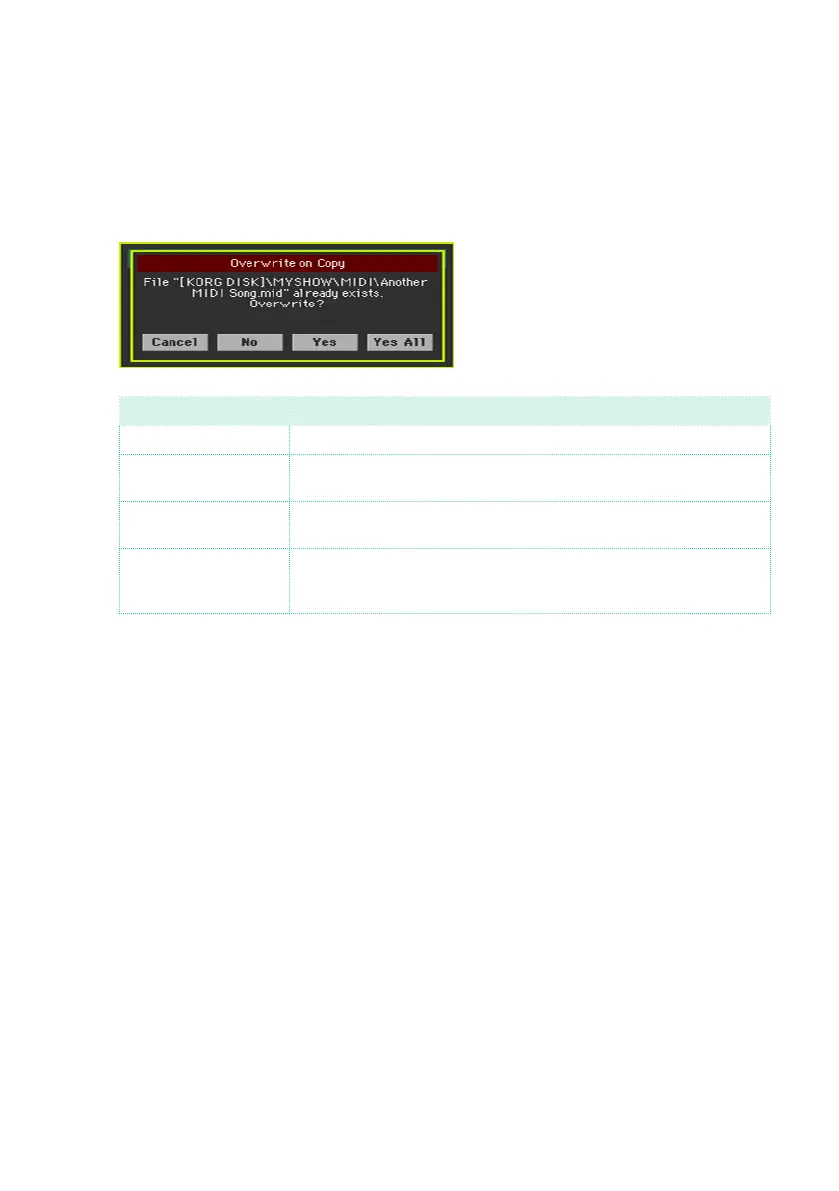 Yes (to) All The file or folder is overwritten. Any following duplicate file or fold-