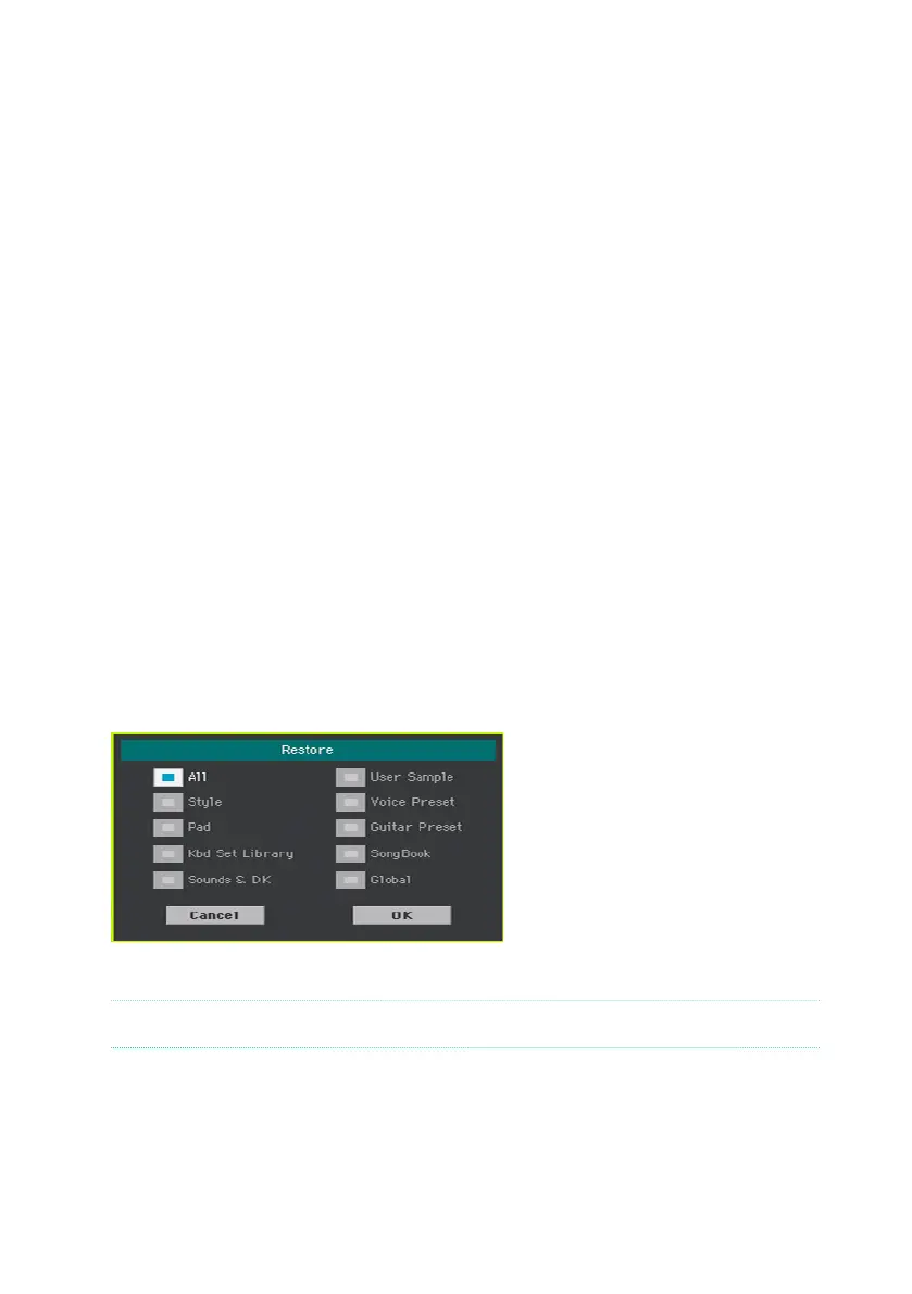5 After touching Restore, a dialog will appear, with a list of types of data to be