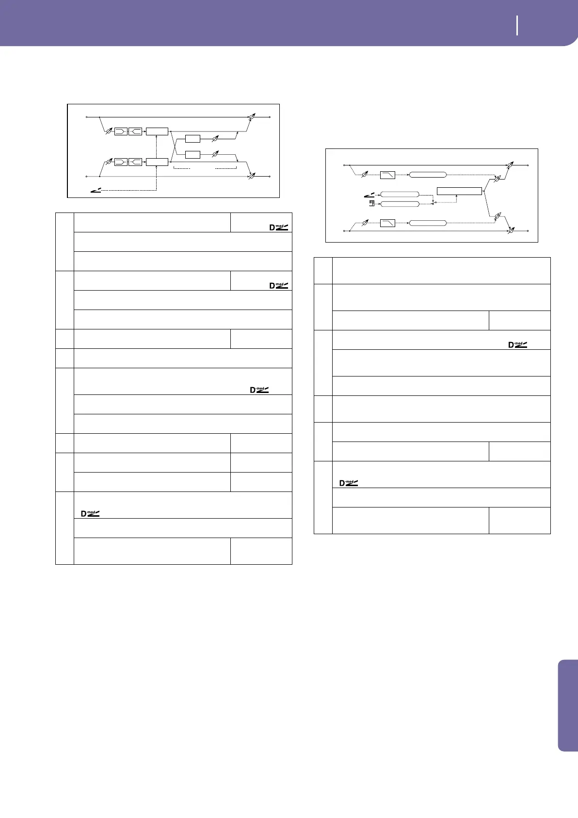 Table , “Sets the modulation amount of the effect bal-