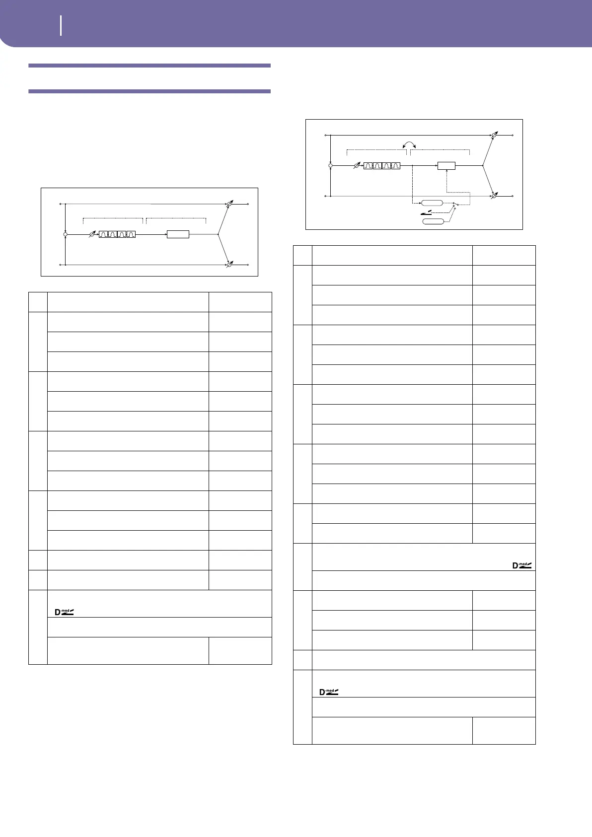 Table , “Sets the modulation amount of the effect bal-