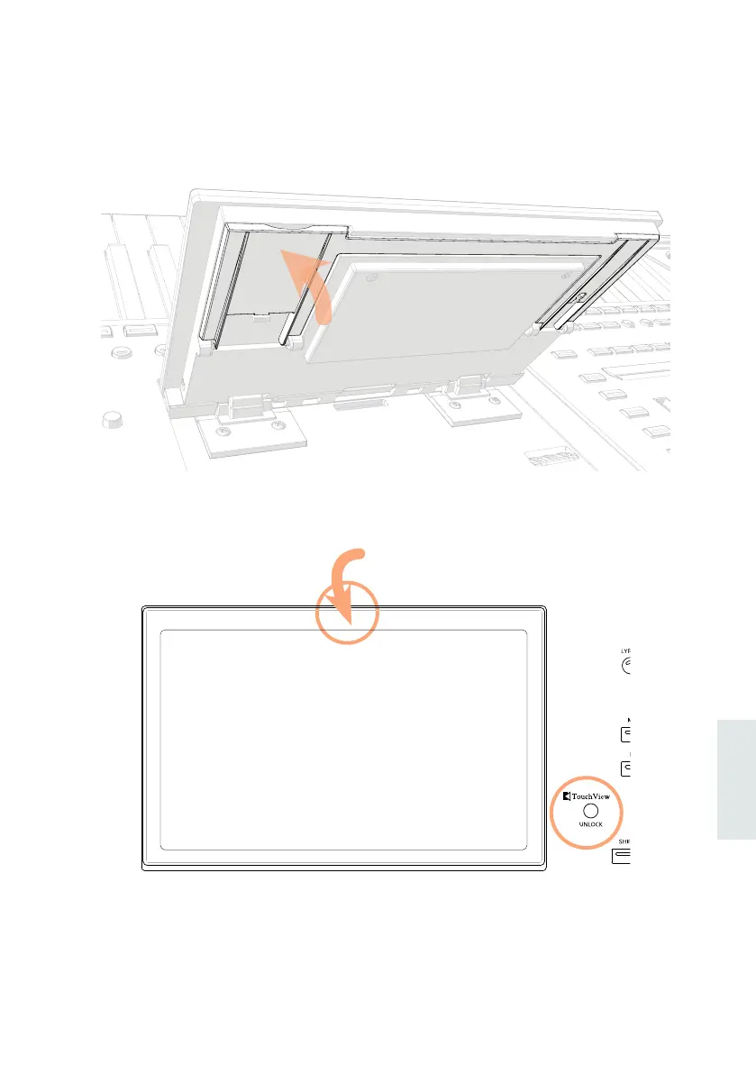 4▪ 松开 UNLOCK钮,然后轻轻按下顶部边框的中心显示锁定在初始位置。