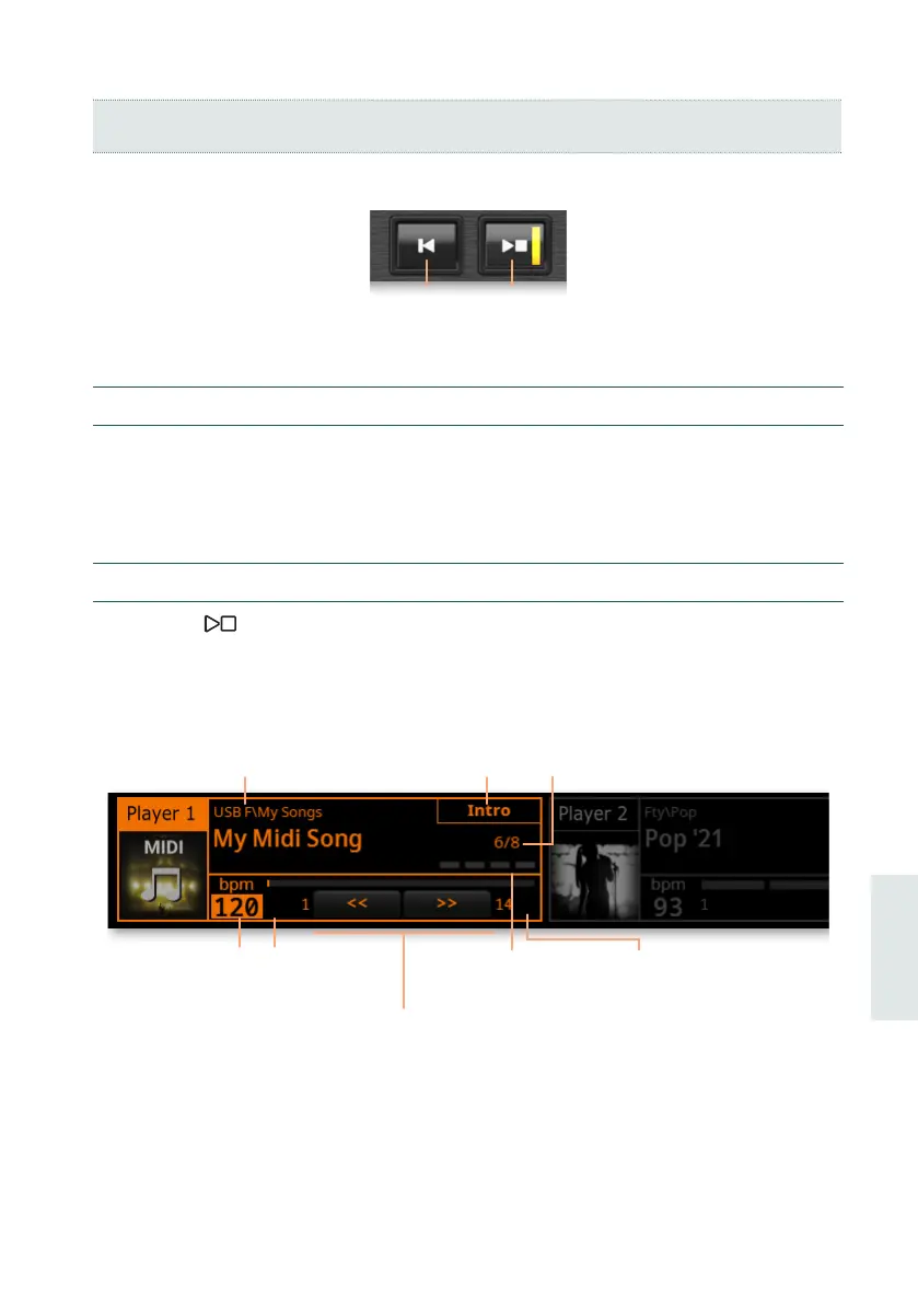 可以使 PLAYER▪1PLAYER▪2分中的控件手动开始和停止歌曲。