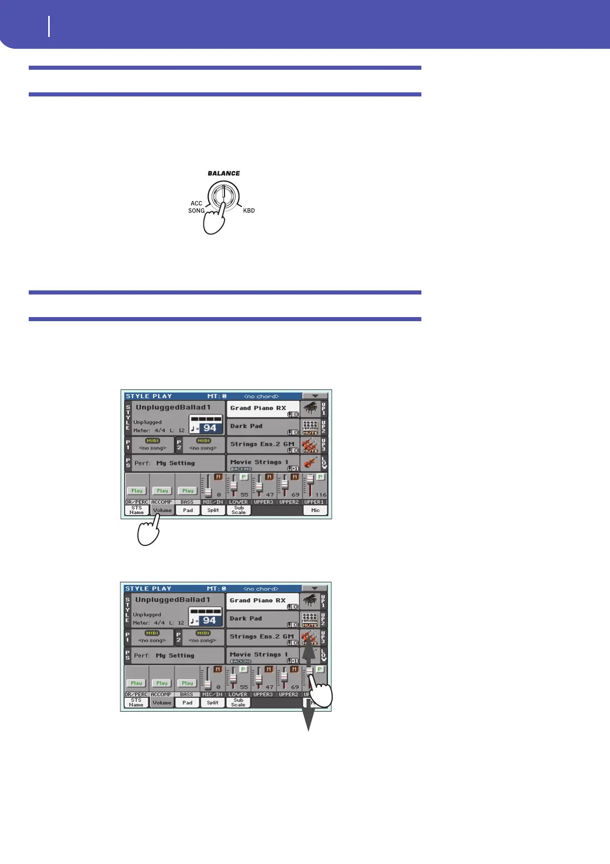 • While the Style is playing, use the BALANCE knob to balance between the Keyboard