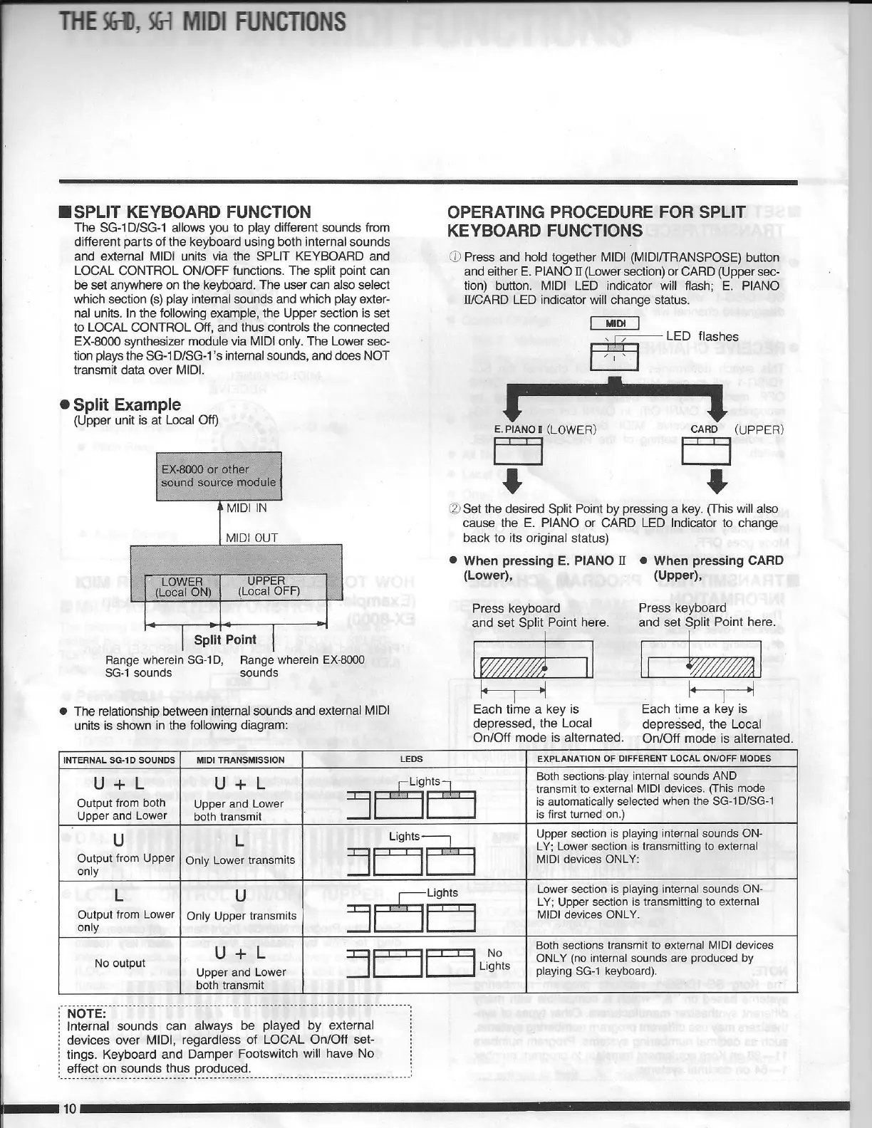 Korg SG-1D - Split Keyboard Function; Operating Procedure for Split Keyboard Functions; Split Example
