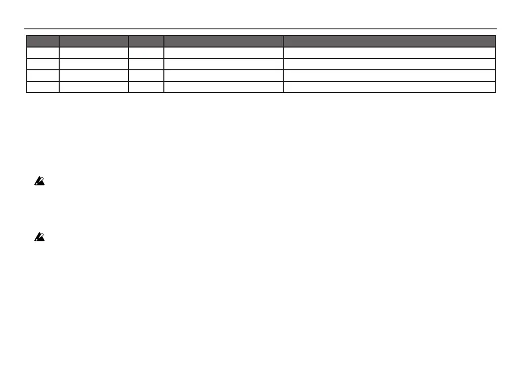 パッド位置 グローバル・パラメーター名 PARAM ノブ Value(太字は初期値) パラメーターの詳細、備考