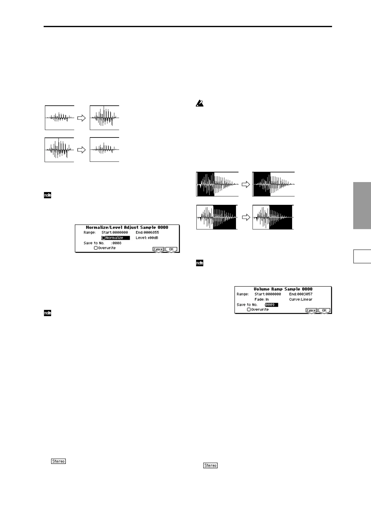 Range End).” “Normalize” will amplify the level of the sam-