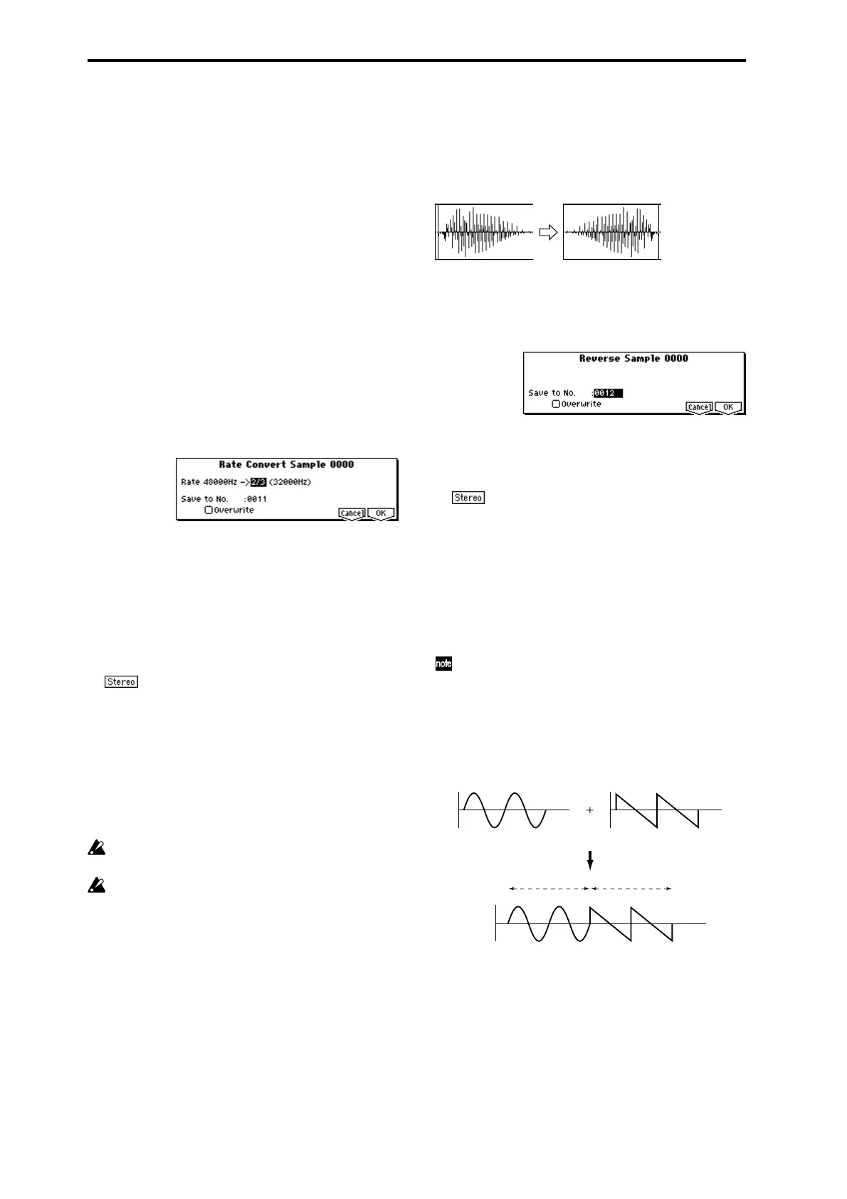 For a stereo sample, “Save to No.(L)” and “(R)”