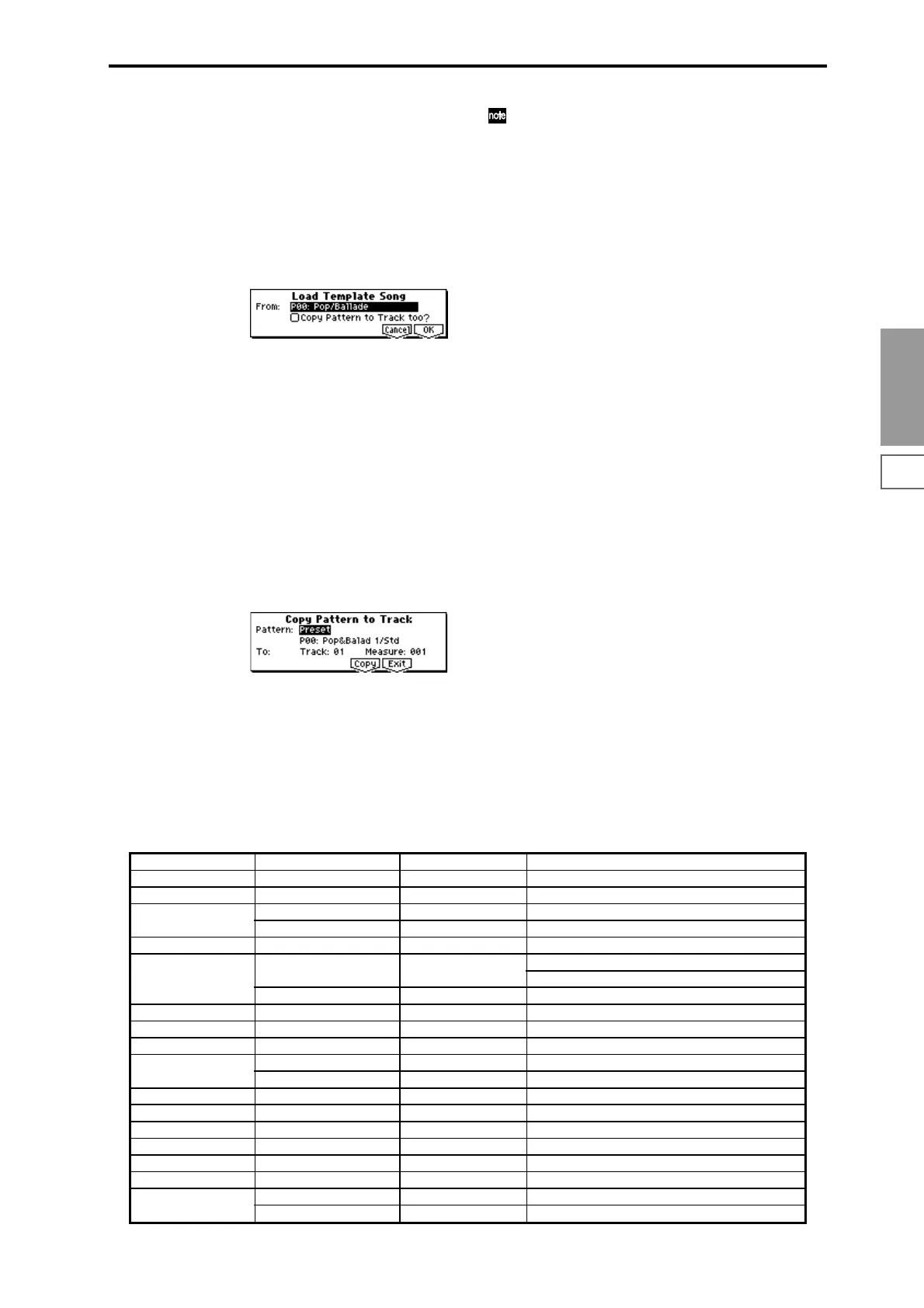 Preset Template Song Track No.: Name Program Corresponding Preset Pattern No.:Name