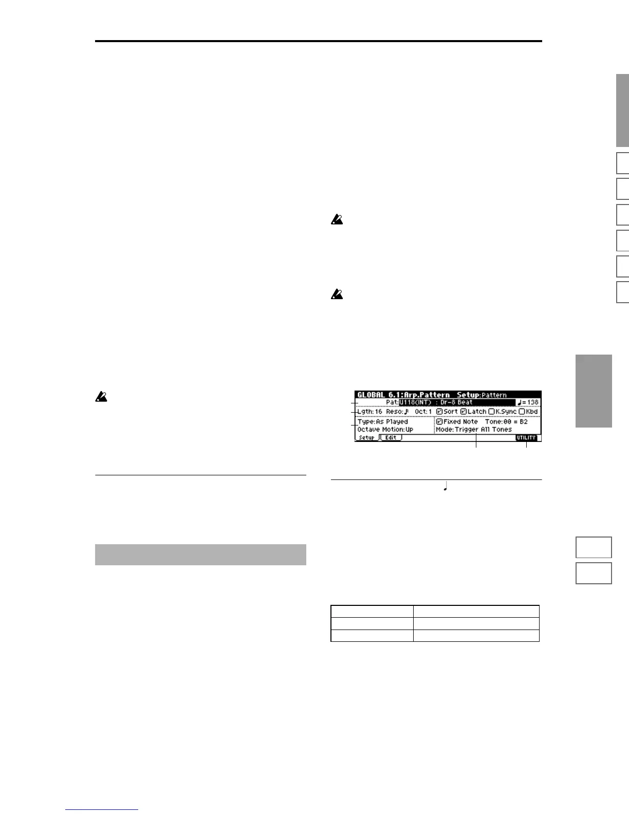 P000 …P004 Preset Arpeggio Patterns