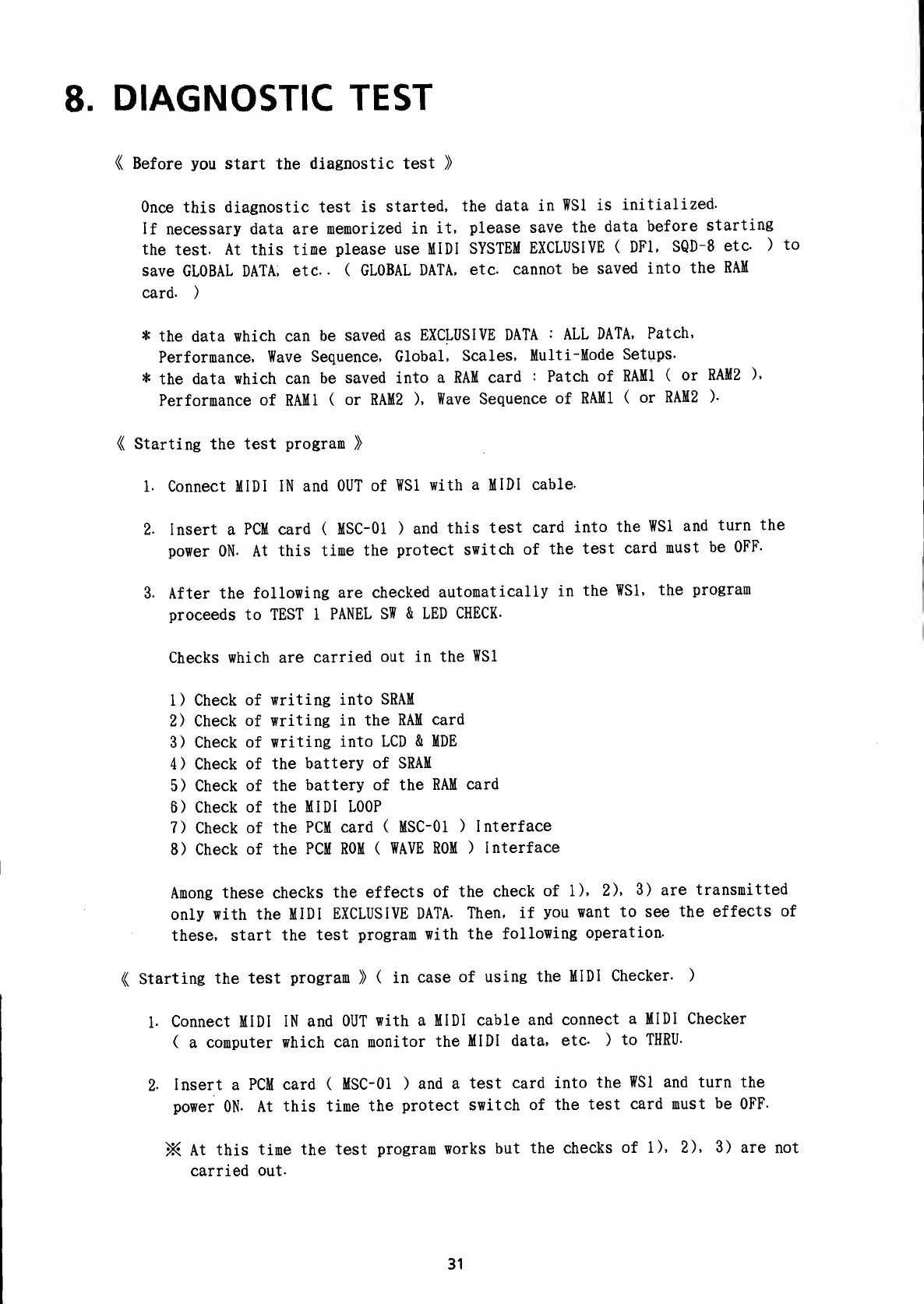 Korg Wavestation - Diagnostic Test