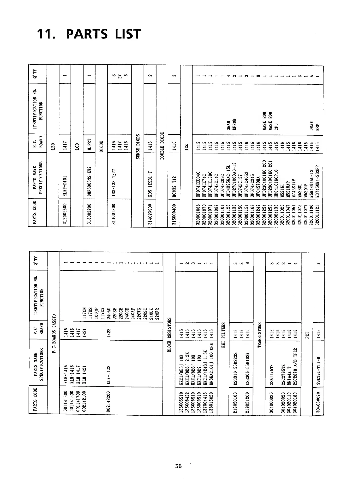 11. PARTS LIST
