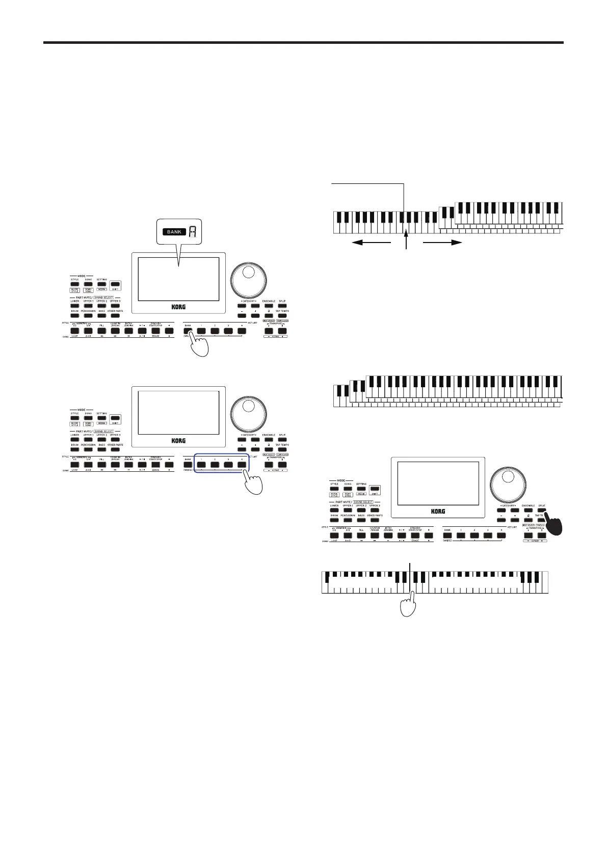 keyboard range will play upper parts 1–3.