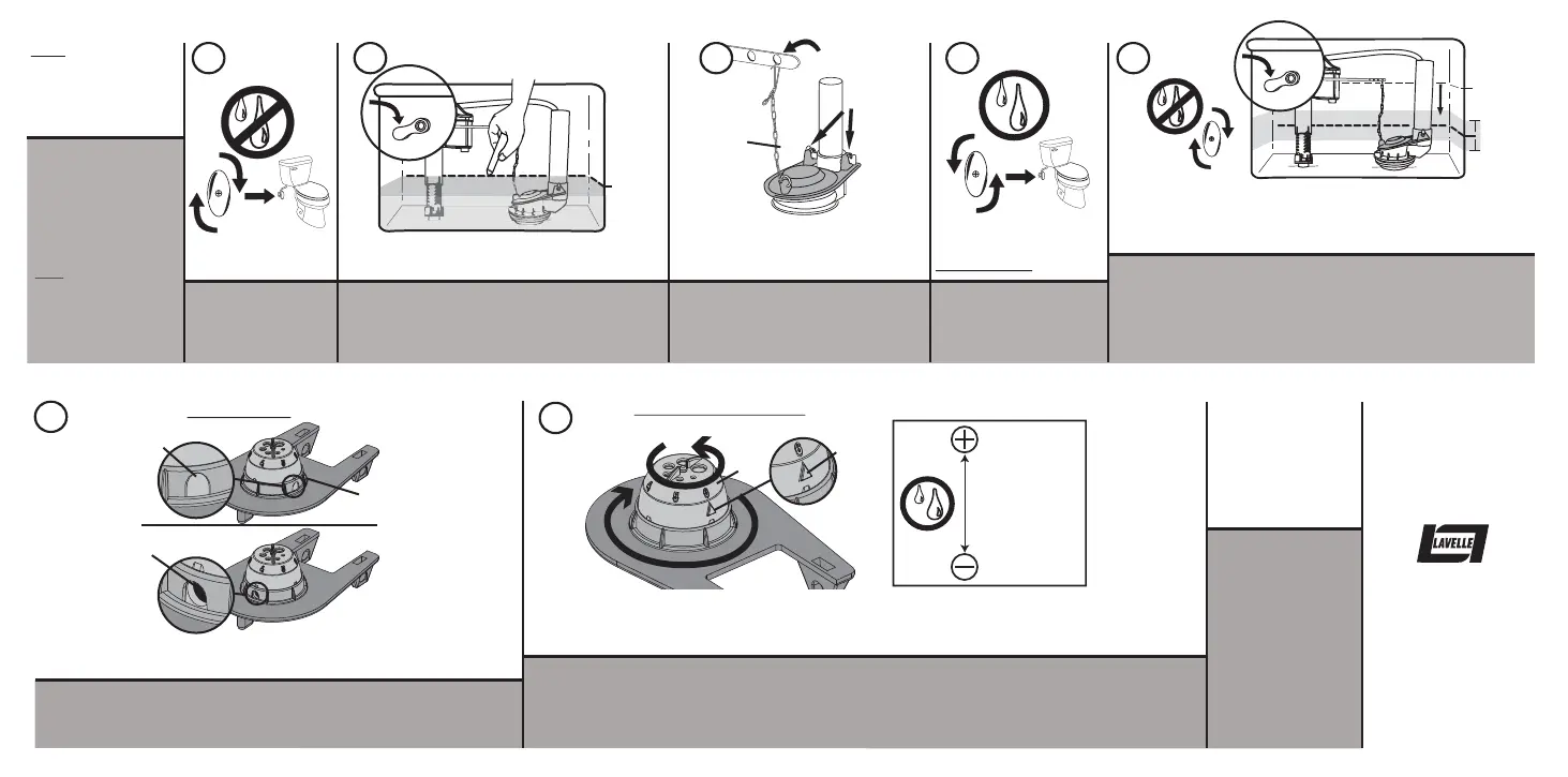 étapes 4 et 5 et ajustez le cadran jusqu’à ce que le réglage permette au niveau d’eau de descendre de moins