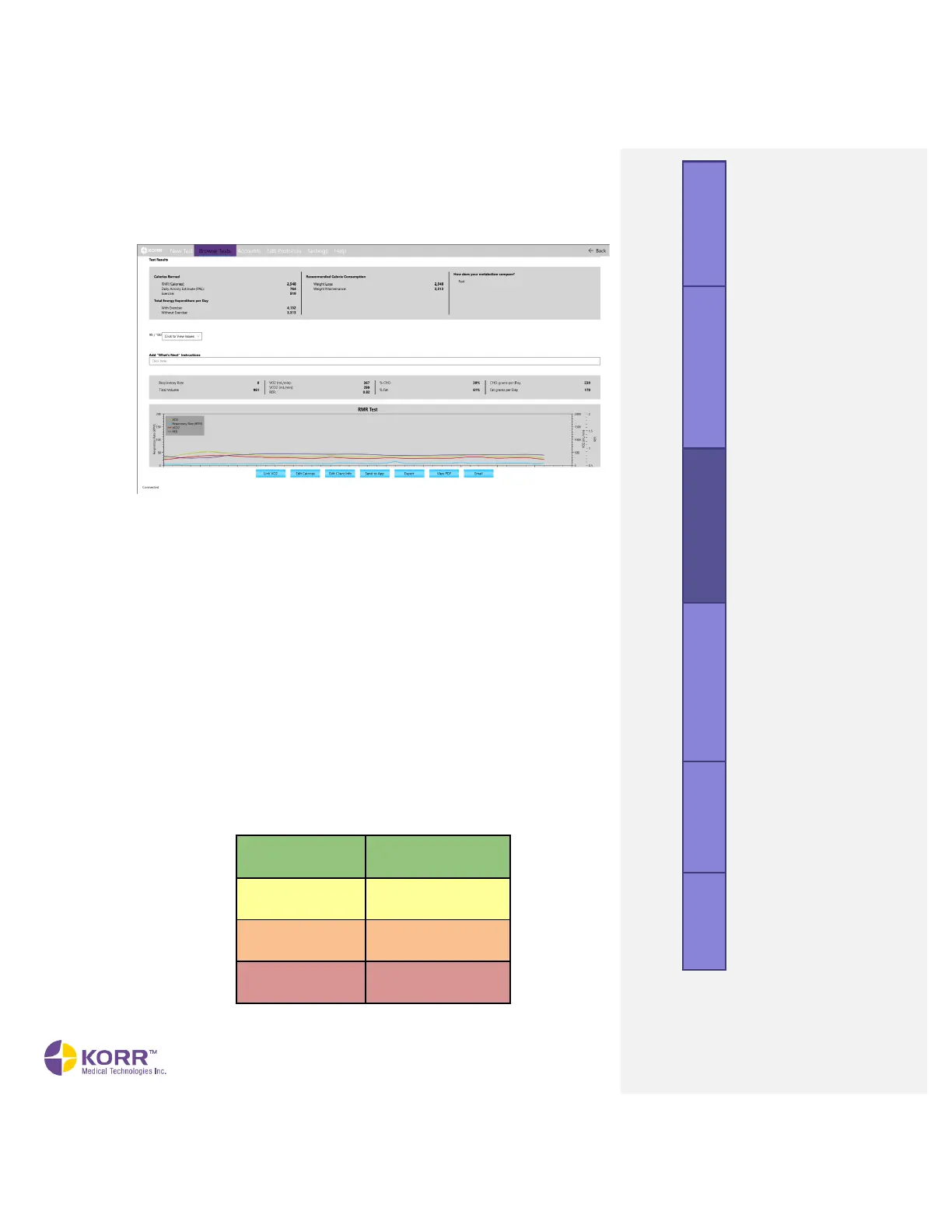 CardioCoach PRO compares the measured RMR value to the predicted RMR