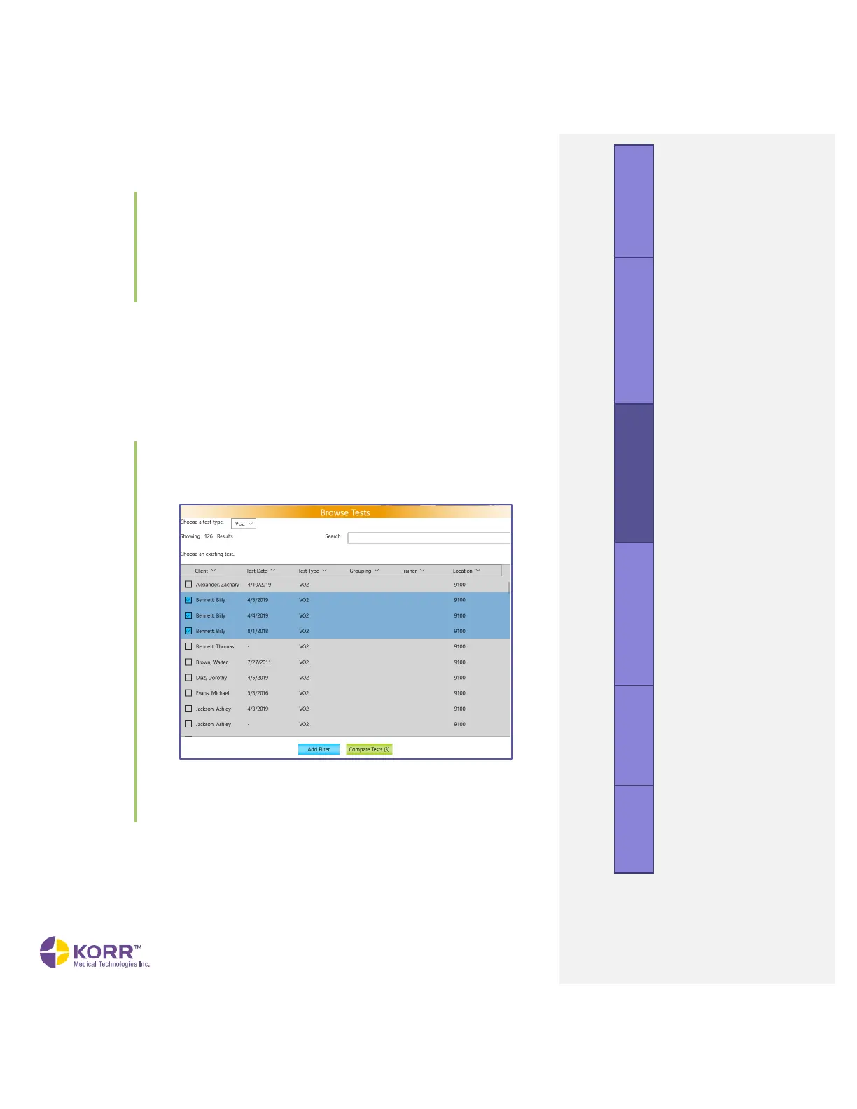 1. Check the box next to the test results you wish to compare, as shown