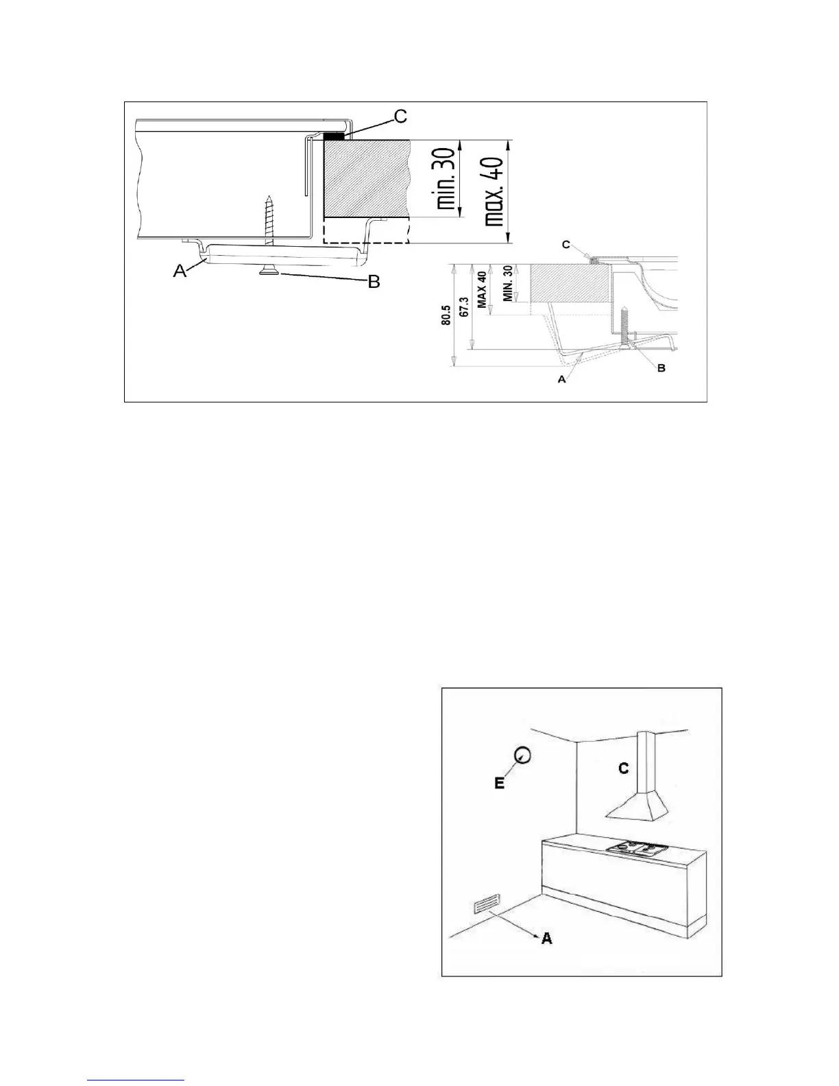 In case of appliances without safety valves, the wall opening section should be of minimum 200 cm
