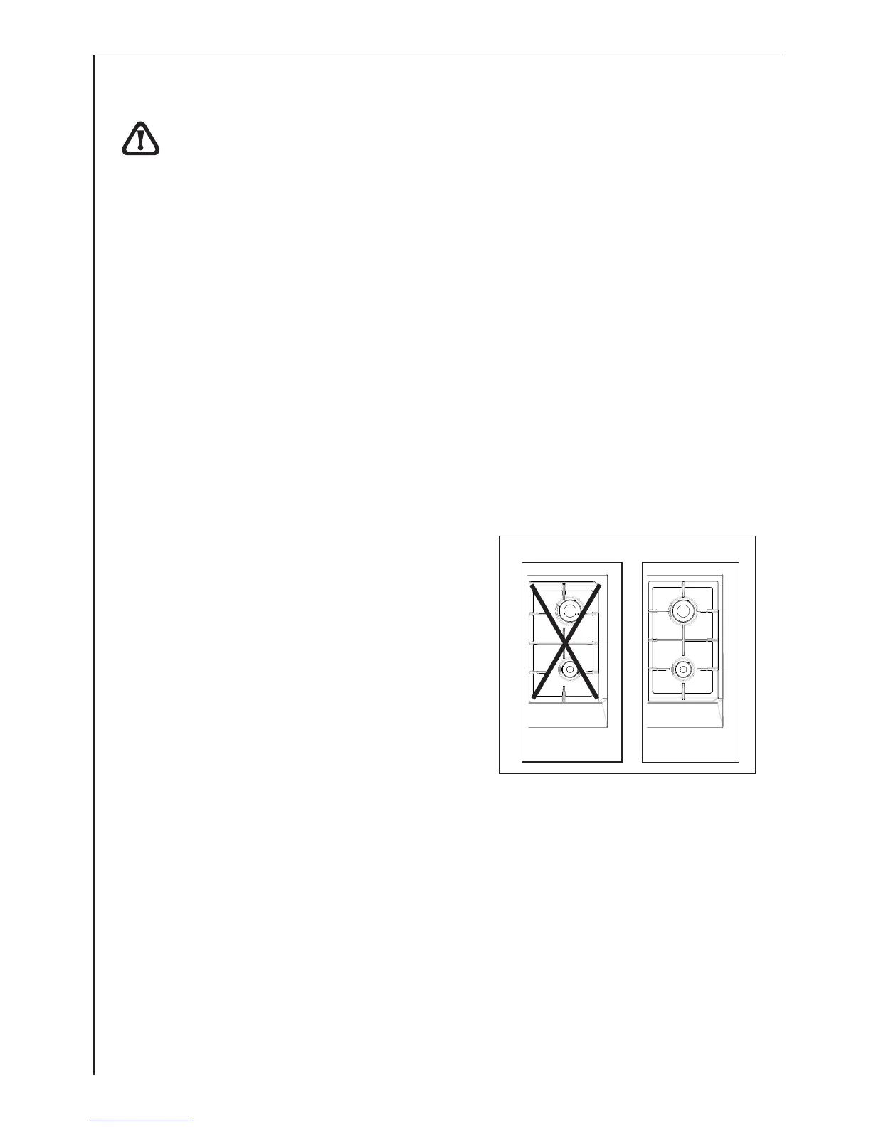are over the centres of the burners, as shown in