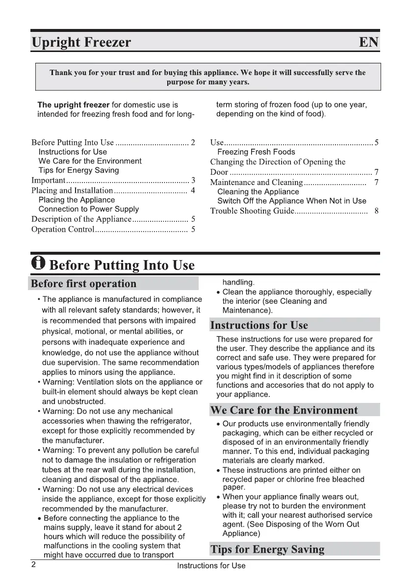 KORTING KF3275W - Before Putting Into Use; Before first operation