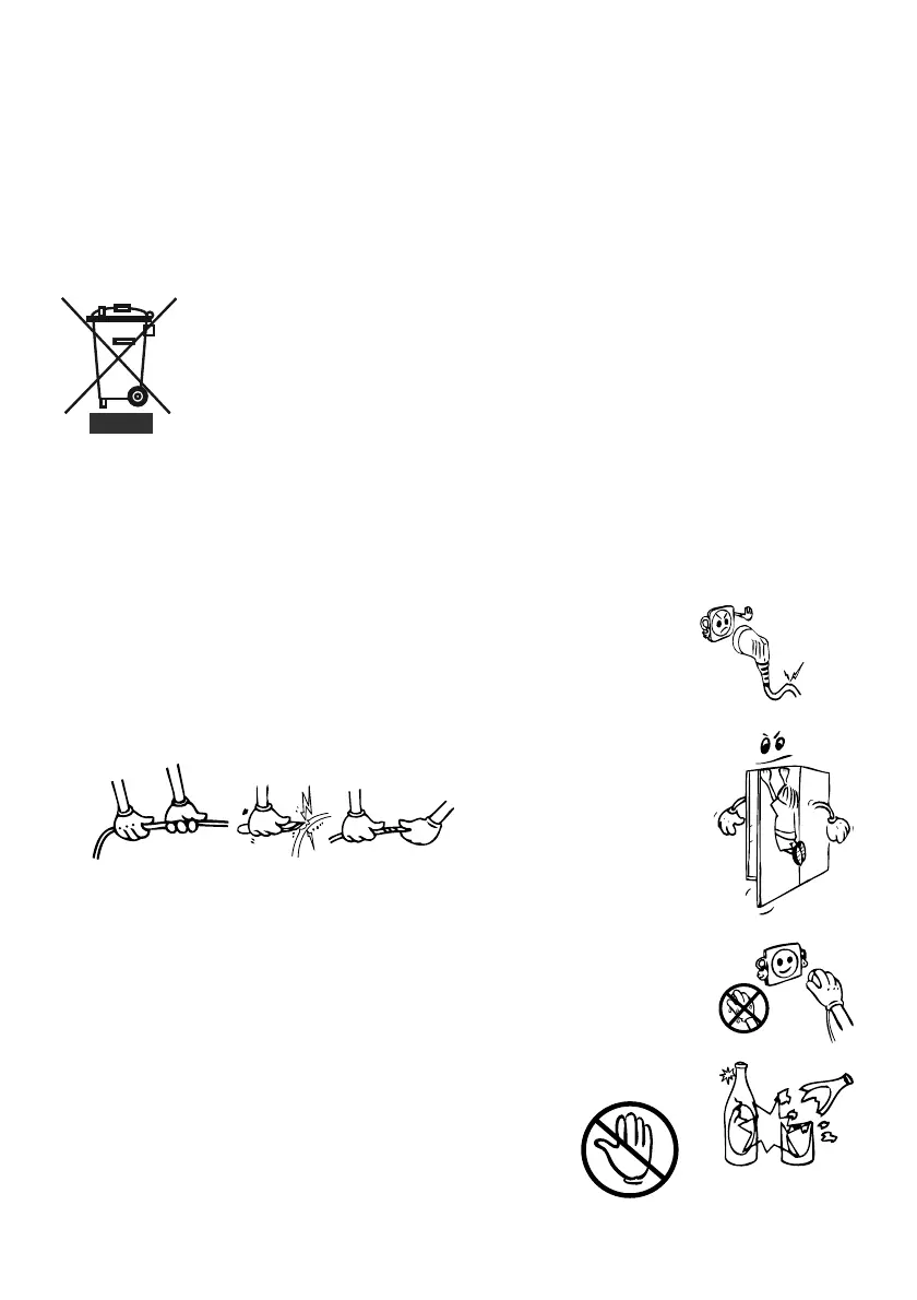 • Ne stavljajte staklene boce ili nekakve druge spremnike čvrste