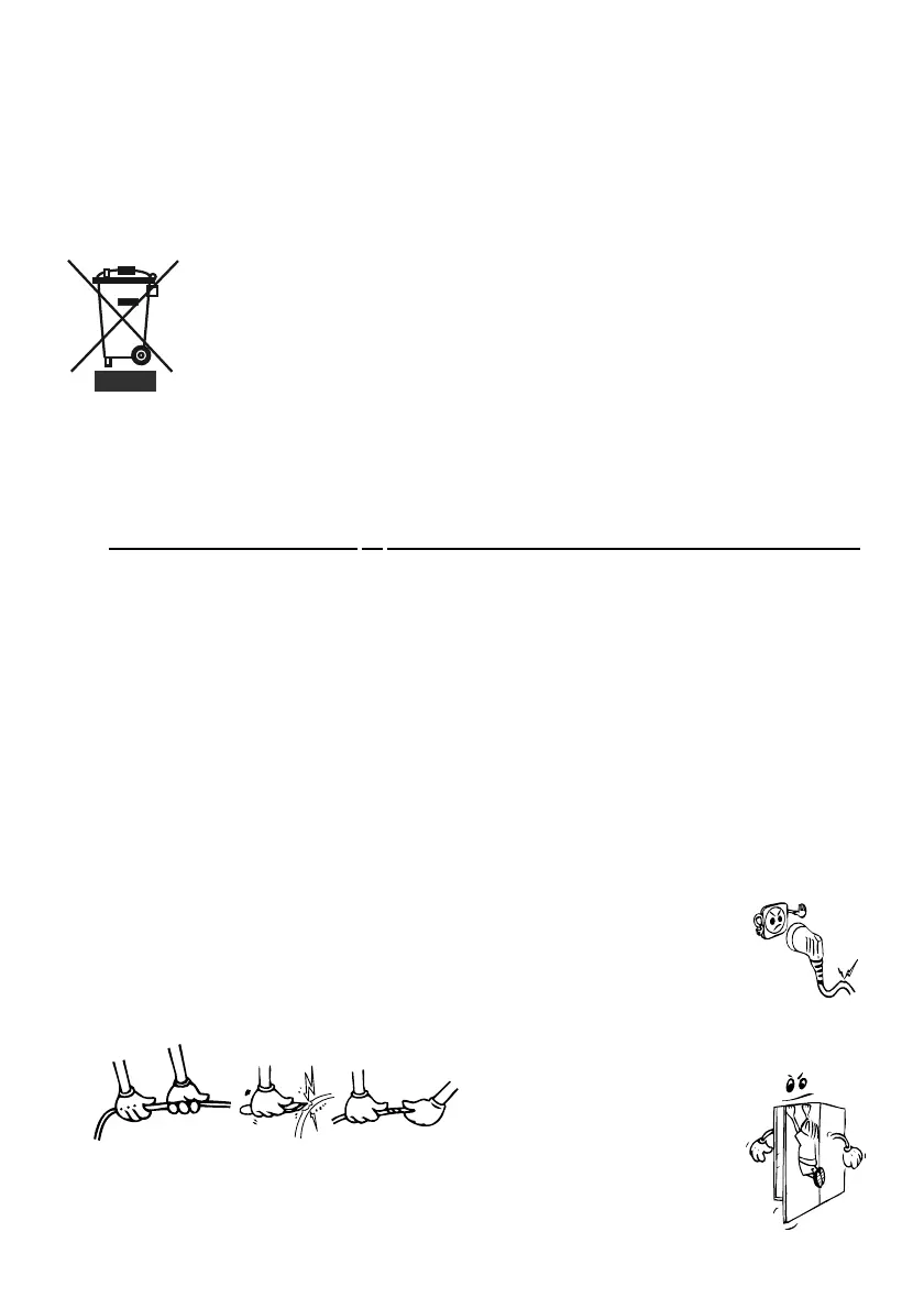 • Neťahajte, neohýbajte alebo nepoškodzujte elektrický kábel.