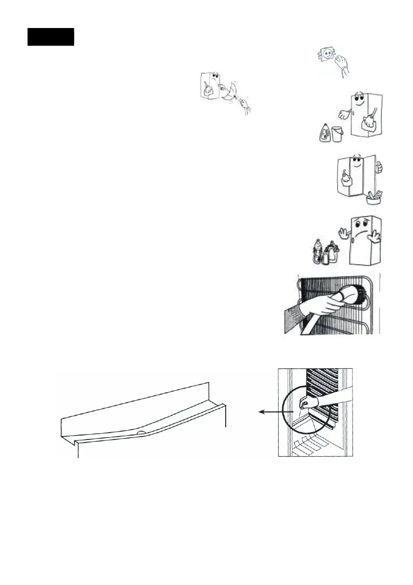 • výparník a otvor pre odvod vody z odmrazovania by mali byť periodicky čistené spolu