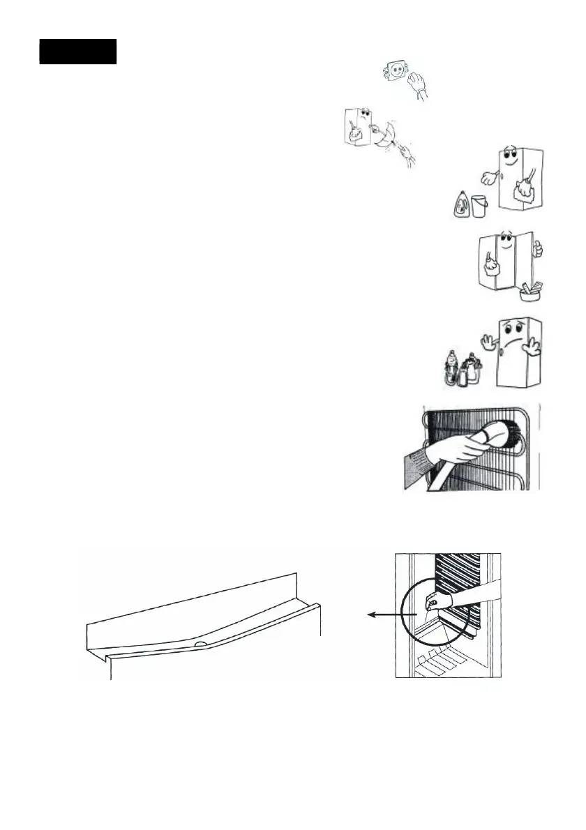 • Chladnička by měla být periodicky čištěna prostředky k tomu