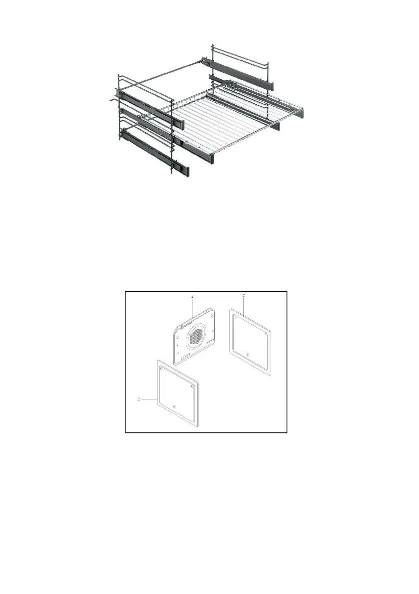 Снимите боковые решетки, расположите панели (C) на боковых стенках духовки, и снова установите