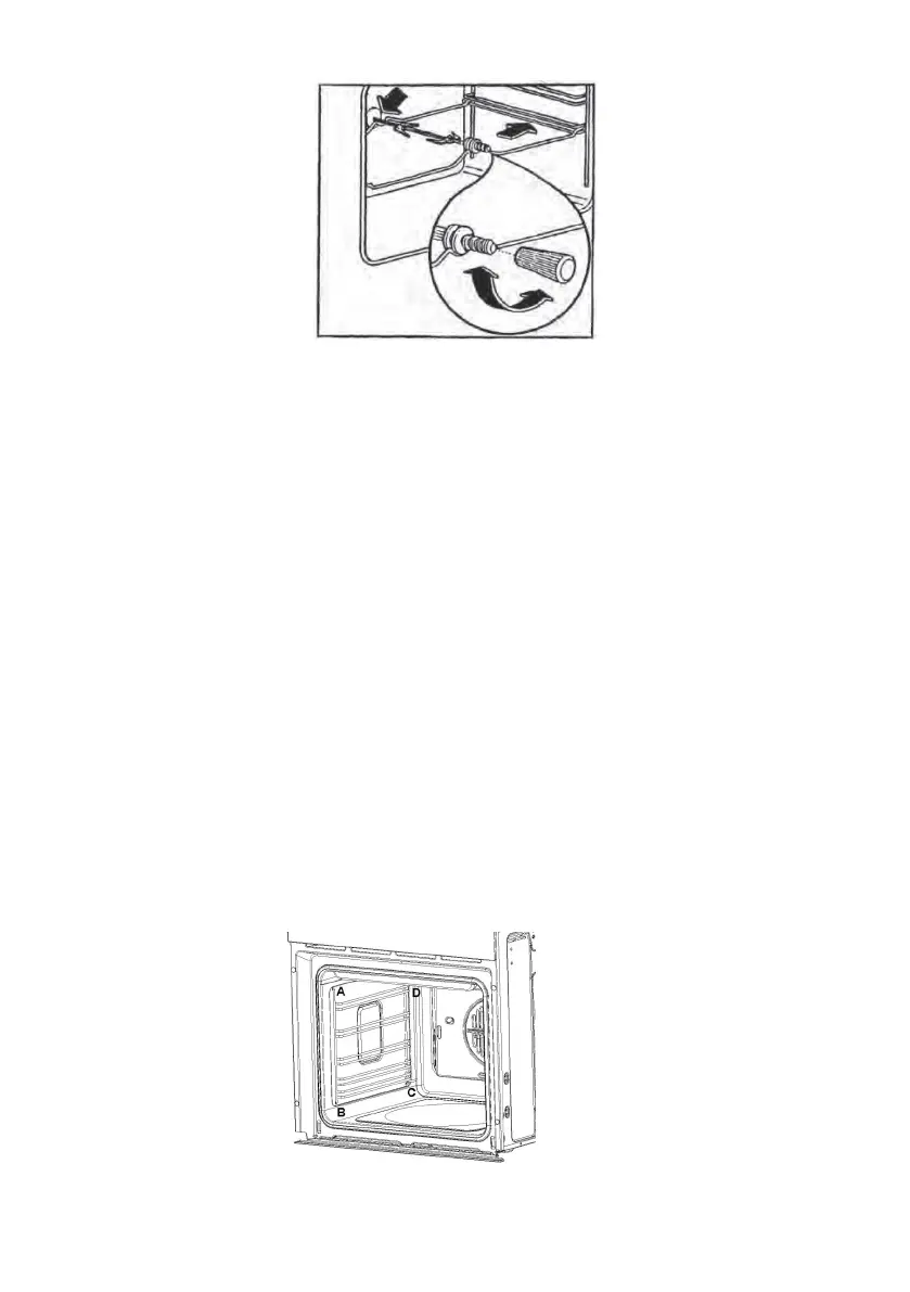 вставьте решетку одновременно в отверстия C и D, затем в отверстие B, а затем в отверстие A.