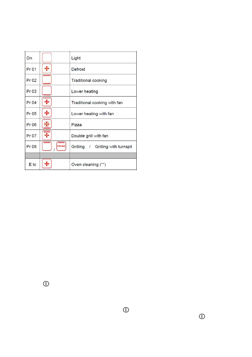 Note: if the oven is turned on, it is always possible to turn it off by pressing and releasing key (4), even if