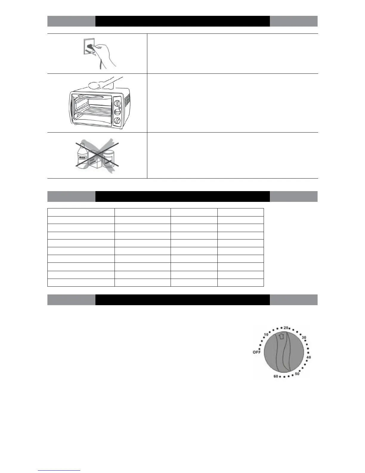 3. The oven can be turned off manually during cooking by turning the timer counter-clockwise to the “0FF” position.