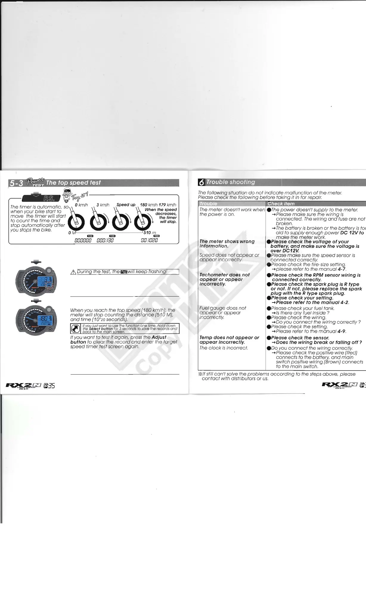 Koso RX2N GP - Trouble Shooting