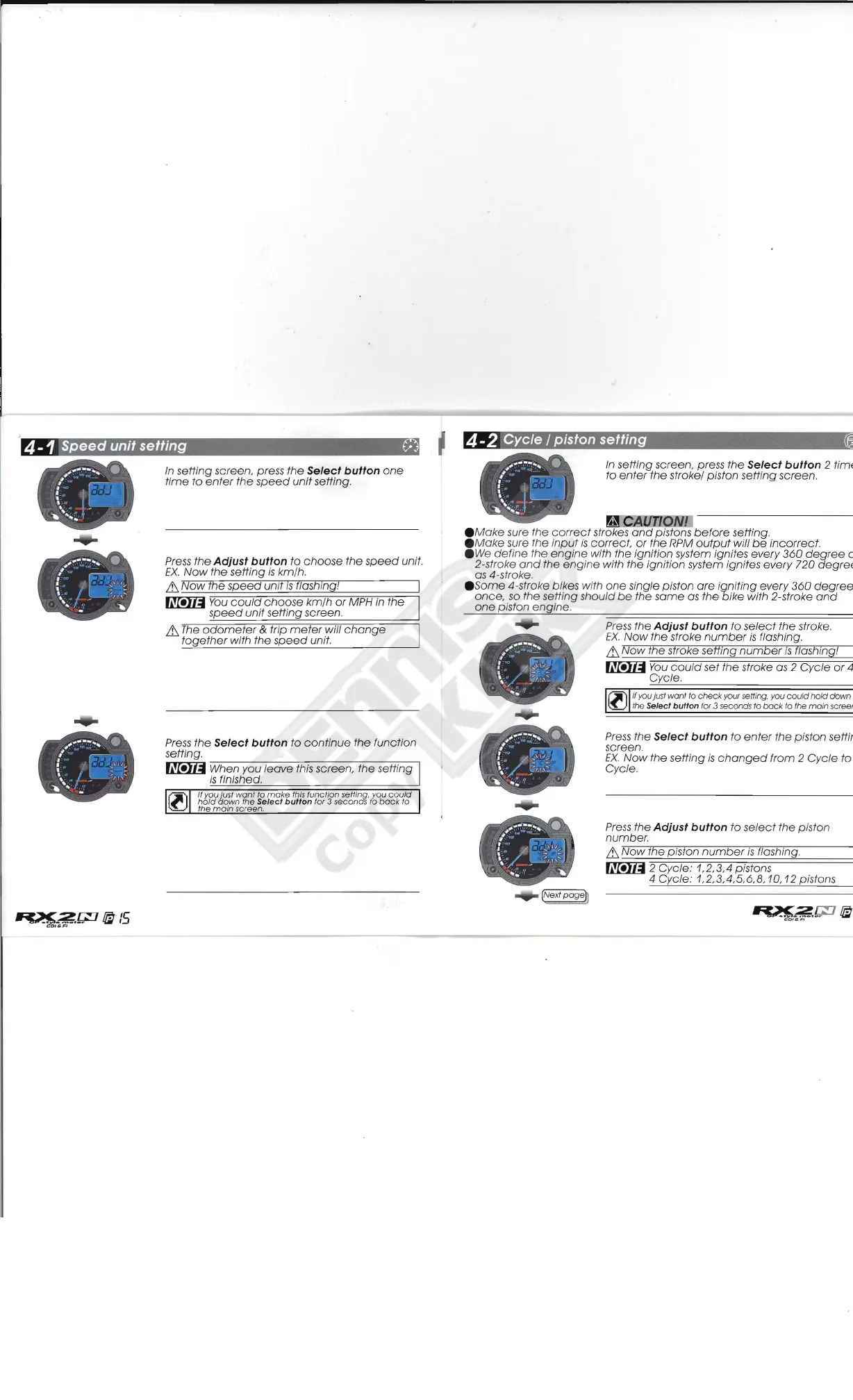 Koso RX2N GP - 4-1 Speed Unit Setting; 4-2 Cycle; Piston Configuration