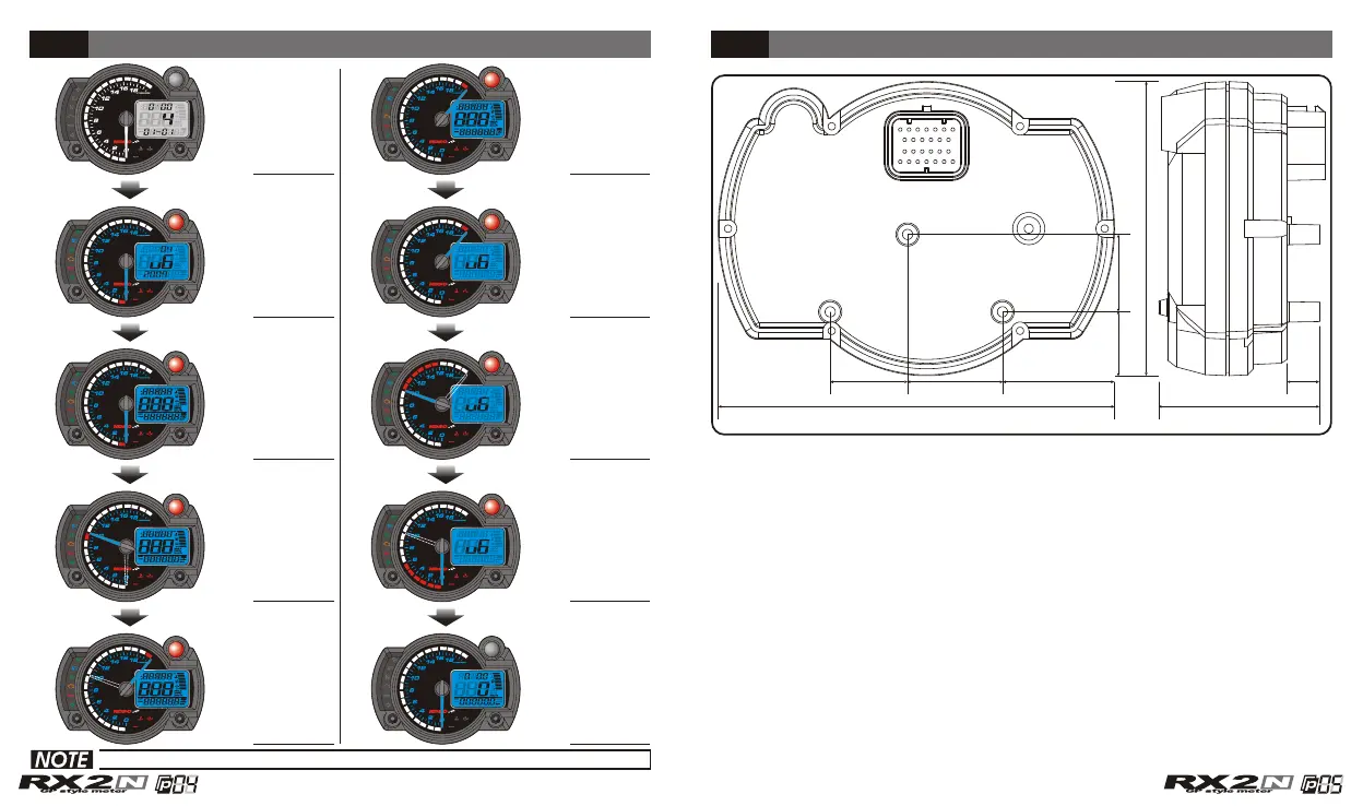 Koso RX2N - 3-1 Auto-checking Screen; Understanding the Meters Startup Sequence; 3-2 Meter Size; Physical Dimensions and Mounting Specifications
