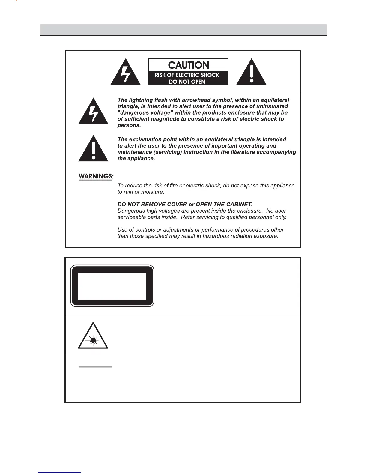 DO NOT STARE INTO BEAM. Avoid direct exposure to laser beam.